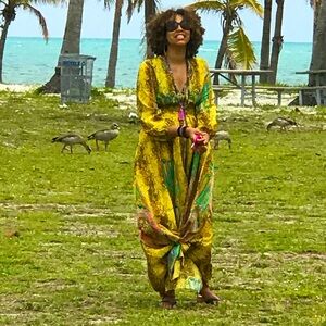 vibrant yellow print boho dress that seamlessly blends sexiness with elegance