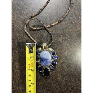 NECKLACE Sodalite And Lapis Lazuli Flower Pendant Handmade/Signed By Artisan