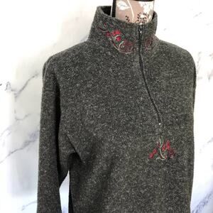 Victoria’s Secret Country Pullover Fleece Quarter Zip Floral Embroidery Gray