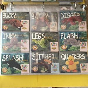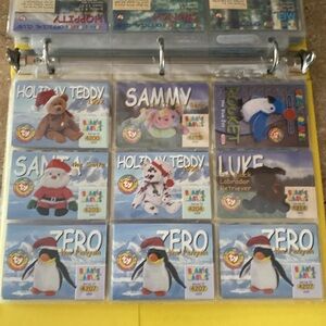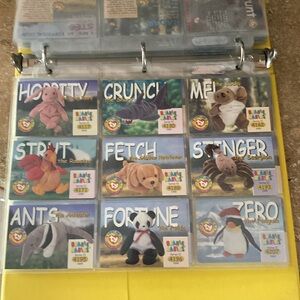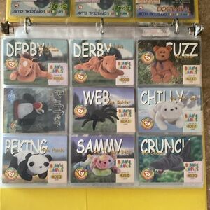 Beanie Baby official collector card binder with cards. Vintage 1998. Binder has a couple of storage marks per pictures. More cards than pictured. Cards are mint.