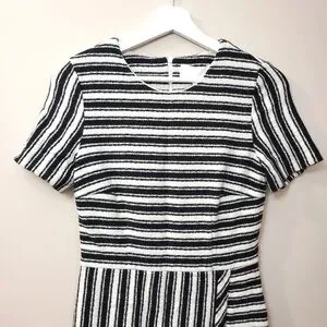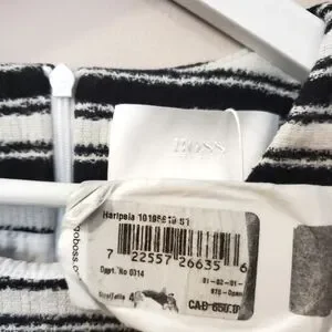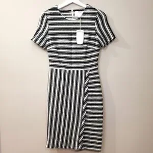 New with Tags - Hugo Boss "Haripela" dress. Black and white striped in horizontal and vertical blocked areas.