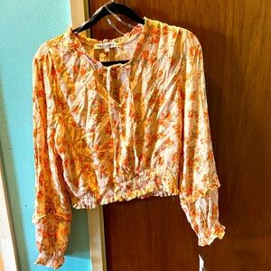 Beautiful long sleeve peach puree color top with flower detail. Never been work. Tags still attached