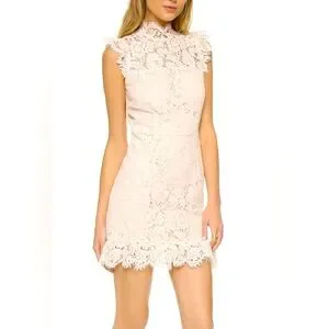 Revolve Aijek eyelash pink lace mini dress keyhole back
