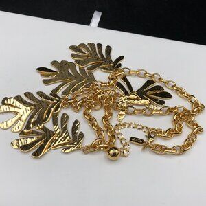 Kate Spade Necklace New Leaf Collection Hammered Gold Tone Statement Chain EUC