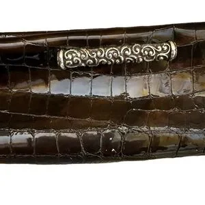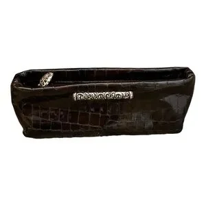 Brighton Cher Brown Croc Embossed Patent Leather Cosmetic Makeup Bag. 8” x 3” x 2”