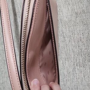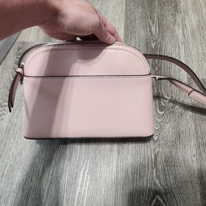 pale pink semi circle kate spade cross body. used a couple of times. in like new condition. strap is adjustable. Has a pocket along the back.