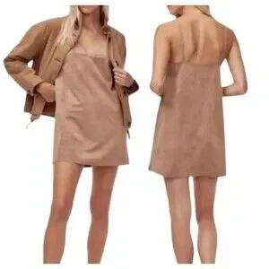 Aritzia Wilfred Free Nori Vegan Suede Tan Slip Dress Womens S Spaghetti Strap