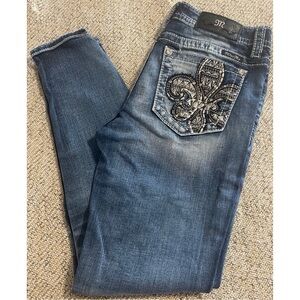 Miss Me Hailey Skinny Embroidered Fleur De Lis Jeans 29x28 Like New