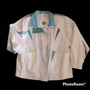 Y2K FLEET STREET white jacket with color blocks w/ 80's feels!