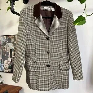 Ann Taylor 100% Wool Houndstooth Blazer Brown 10P