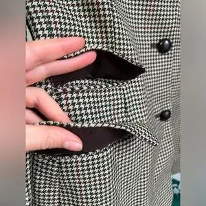 Ann Taylor 100% Wool Houndstooth Blazer Brown 10P. 100% brown cotton lining. No flaws. Has shoulder pads. Houndstooth colors are green and maroon.
