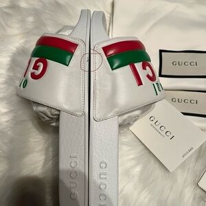 Small scuffs circled in picture. One on bottom and one on side of slide.