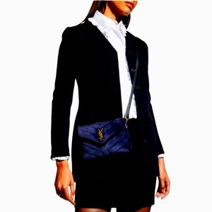 Very Rare!!! NEW!!! Saint Laurent YSL Blue Velvety Suede Toy Loulou Strap Bag