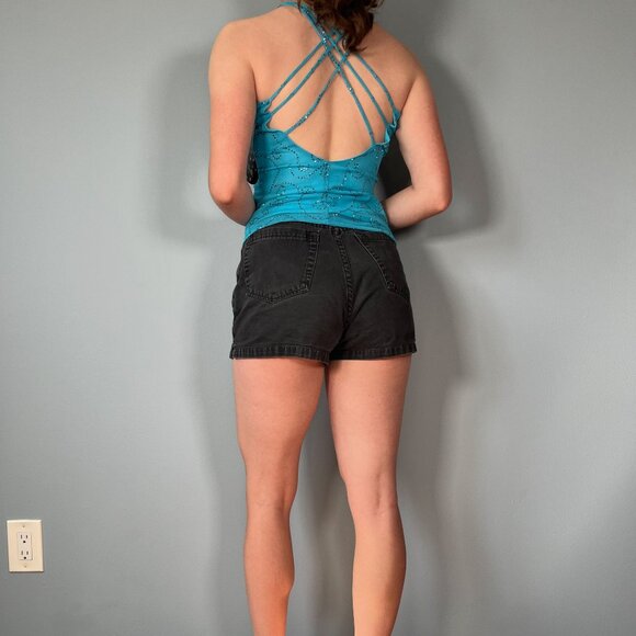 Stunning Y2K sparkly blue tank with strappy back detail!