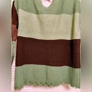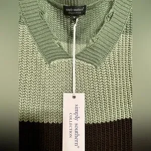 NWT Women’s Simply Southern Green and Brown Striped Distressed Sweater Size Medium