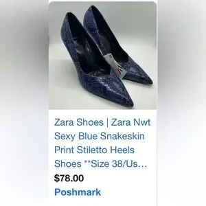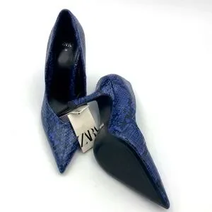 Zara NWT Sexy Blue Snakeskin Print Stiletto Heels Shoes **Size 38/US 7.5**🔥🔥