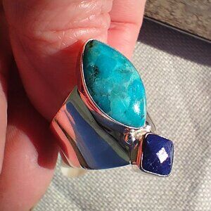 Jay King DTR mine finds turquoise Lapis ring size 9 sterling Silver 925