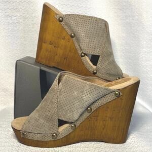Sbicca khaki Suede Leather Stud Platform Sandals women size 8 M