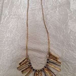 Vtg Liz Claiborne Two Tone Fringe Fan Drop Statement Necklace 18-20" G &S Tone