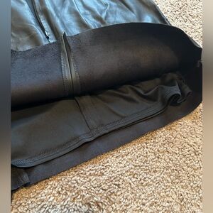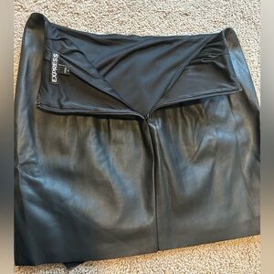 Express black leather mini skirt. Size 6. Ruffle on hip. Very stretchy and comfortable. Double lined. Worn once. No trades.