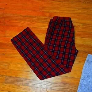 Jones New York straight leg red plaid slacks.