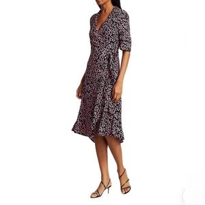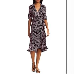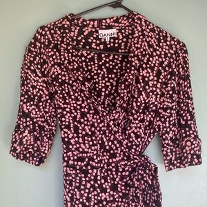 Flirty summer spring wrap dress by GANNI. Timeless ditsy floral pattern. Lots of movement.