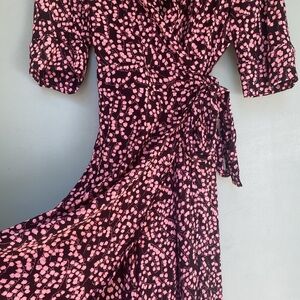GANNI black and pink floral wrap midi dress one size fits all