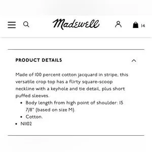 Madewell jacquard keyhole crop top. Size small