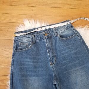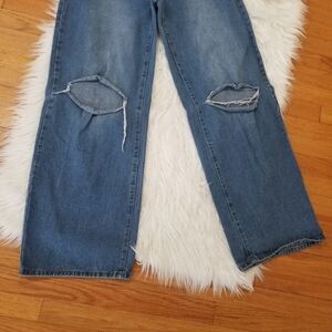 SHEIN High Waist Wide Leg Jeans with Holes on the Knees Color Washed Blue Size M, Measurements are in the Photos, It has a small stain on the back that is shown in the Photos, please look at all the photos to see the details, Make me an Offer!!!