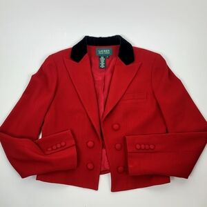Vintage Lauren Ralph Lauren Red Wool Cropped Equestrian Blazer size 6