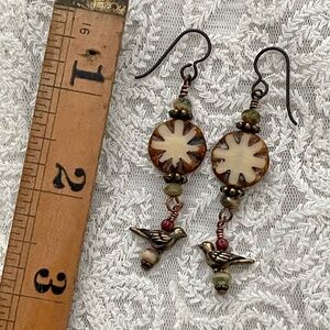 accessory, artisan, artistic, artsy, boho, bohemian, chic, Czech glass, dangle, doves, drop, earthy, festive, fun, event, gift, hand crafted, hand created, handmade, hippie, jewelry, limited edition, unique