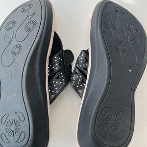 Gorgeous summer sandal with flower in center and tiny rhinestones for a little sparkle.Worn once at a garden party. Soles are excellent. Insole is comfortable.