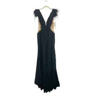 Mac Duggal 67782 Feather Cap Sleeve Lace Floral Applique Embellished Gown SIze 6