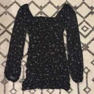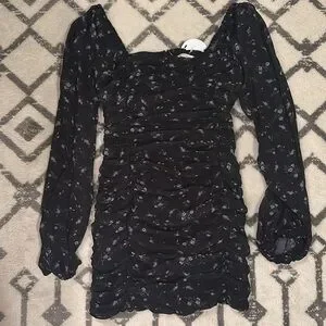 NWT More To Come Jaliyah Ruched Mini Dress in Black Floral from Revolve XS