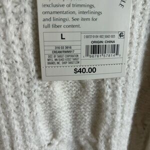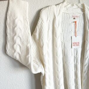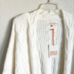 NWT KNOX ROSE Cardigan, Cream, Large, Long Cable Knit Sweater