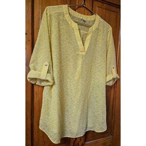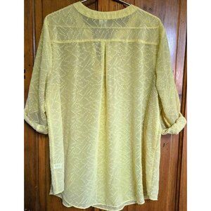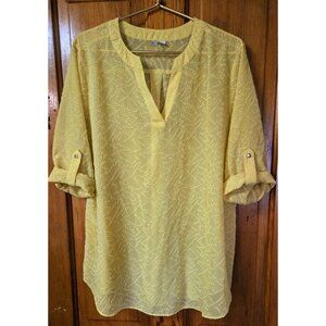 Est 1946 Women's Blouse Tunic Top Flowy Sunny Yellow Boho Shirt Sheer Spring Summer Roll Tab Sleeves. Size 18/20 W