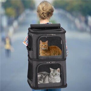 2-in-1 Double Pet Carrier Backpack for Small Cats and Dogs, Portable Pet Carrier