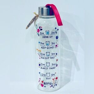 NEW Glass Water Bottle - We all need reminders… especially when it comes to drinking more water! This awesome Glass Water Bottle features little markers to remind yourself to drink more water throughout the day, and it’s soo pretty, you’ll want to use it every day!