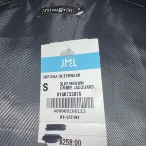This J.McLaughlin’s Cordina ombré vest in blue brown jacquard. Has tags and extra clip attached.