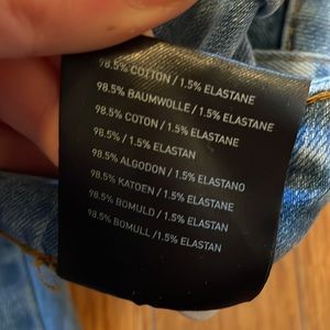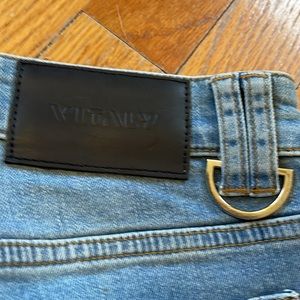 Vitaly distressed everyday denim washed light blue jeans, size 32. I don’t believe these were ever worn but there’s intentional distressing. Excellent condition.