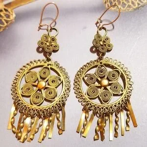 Antique Gilded Sterling Silver Cannetille work Dangle Earrings