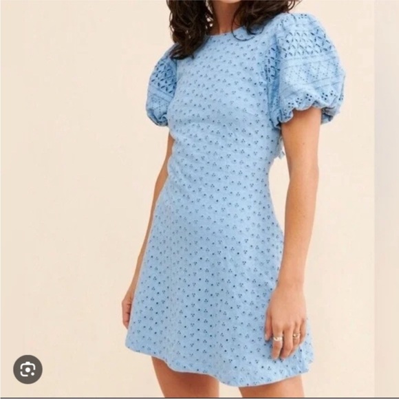 This is so cute and so flattering. Perfect shade of blue and beautiful material. Free people size medium