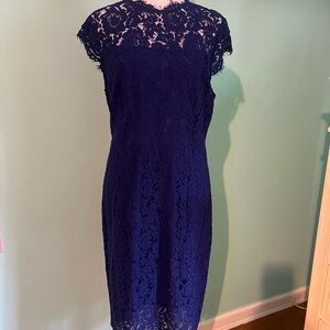 Worn once- Royal Women's Sleeveless Lace Floral Elegant Cocktail Dress Crew Neck Knee Length For Party size large