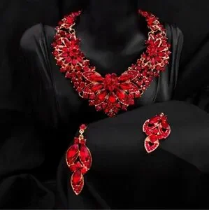 This beautiful red crystal jewelry set is suitable for many occasions, such as weddings, holiday party and many more!