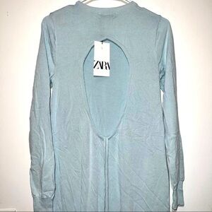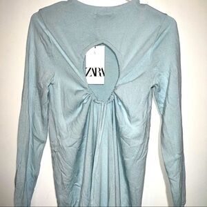 Zara NWT Baby Blue Knit Pencil Dress Open Back