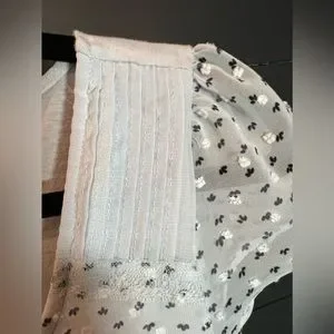 LC Lauren Conrad light baby blue swiss dot short sleeve top. Lace & pintuck detailed top