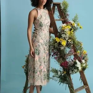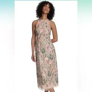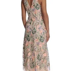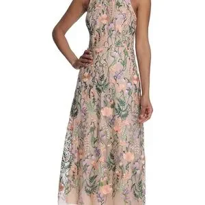Maggy London Women's Floral Embroidered Halter Midi Dress with Back V-Neck