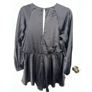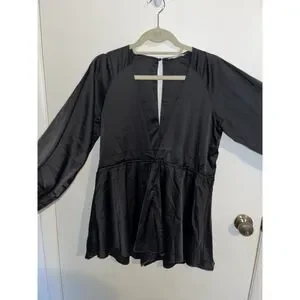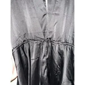 Stolen Hearts Front V-Cut Waist Silky Satin Plunge Jumpsuit Long Sleeve Romper