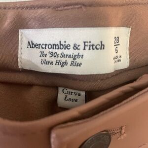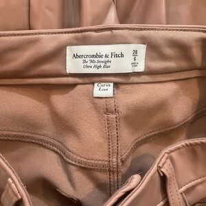 Faux leather straight leg pants in ultra high rise. Inside is knit material. Color is a rose pink. Size is Curve Love 28. I always feel the faux leather pants run small and these fit a true 27 comfortably. Brand Abercrombie & Fitch. NWT.