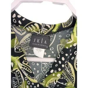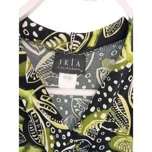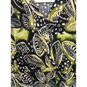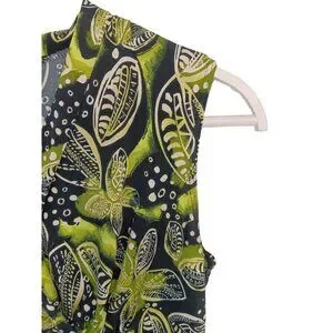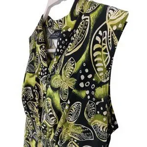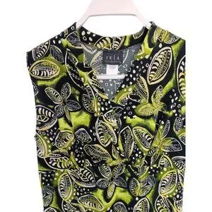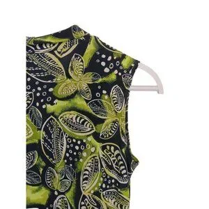JKLA- Sleeveless Tank Stretch Light Faux Wrap collar-Lime Green-Black-Cream